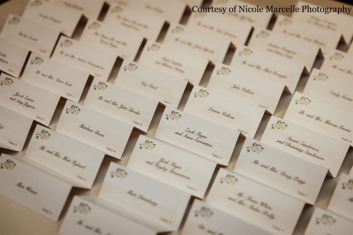 Place Cards and Table Cards do more than direct guests to their tables—they continue your celebration’s story through carefully crafted details.